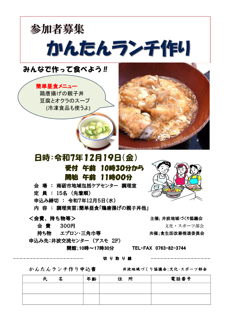 地域づくり協議会では、「かんたんランチ作り」を開催します。