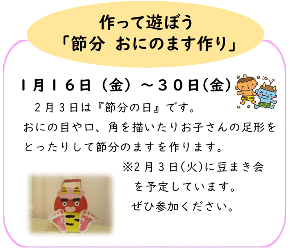 【子育て支援】 作って遊ぼう「節分おにのます作り」を開催