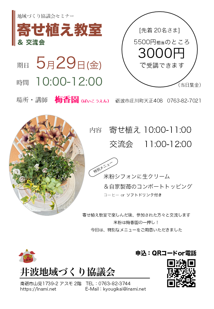 「寄せ植え教室」&「交流会」満席となり、受付を終了いたしました。