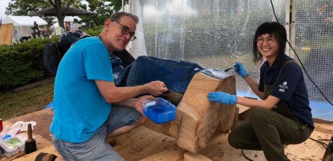 2019年の南砺市いなみ国際木彫刻キャンプにも通訳スタッフとして参加し、作品づくりに参加する楽しさを知ったことで、木彫り体験の充実や、ちょうどよい木彫刻のギフトがあればとアイデアをふくらませています。